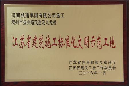泰州市扬州路改造及九龙桥工程被评为江苏省建筑施工标准化文明示范工地